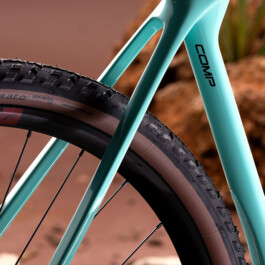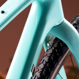 Das Abenteuer-Gravel von Bianchi: Im Unterrohr ist ein kleines Fach für Werkzeuge eingebaut, und am Rahmen sowie an der Gabel sind zusätzliche Befestigungspunkte für Bikepacking angebracht.